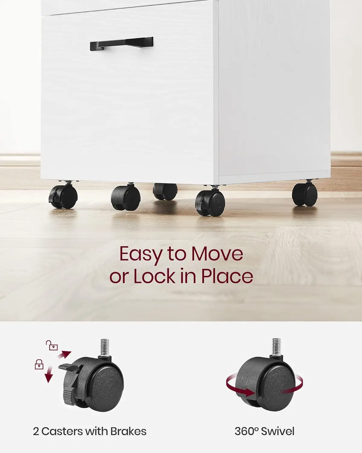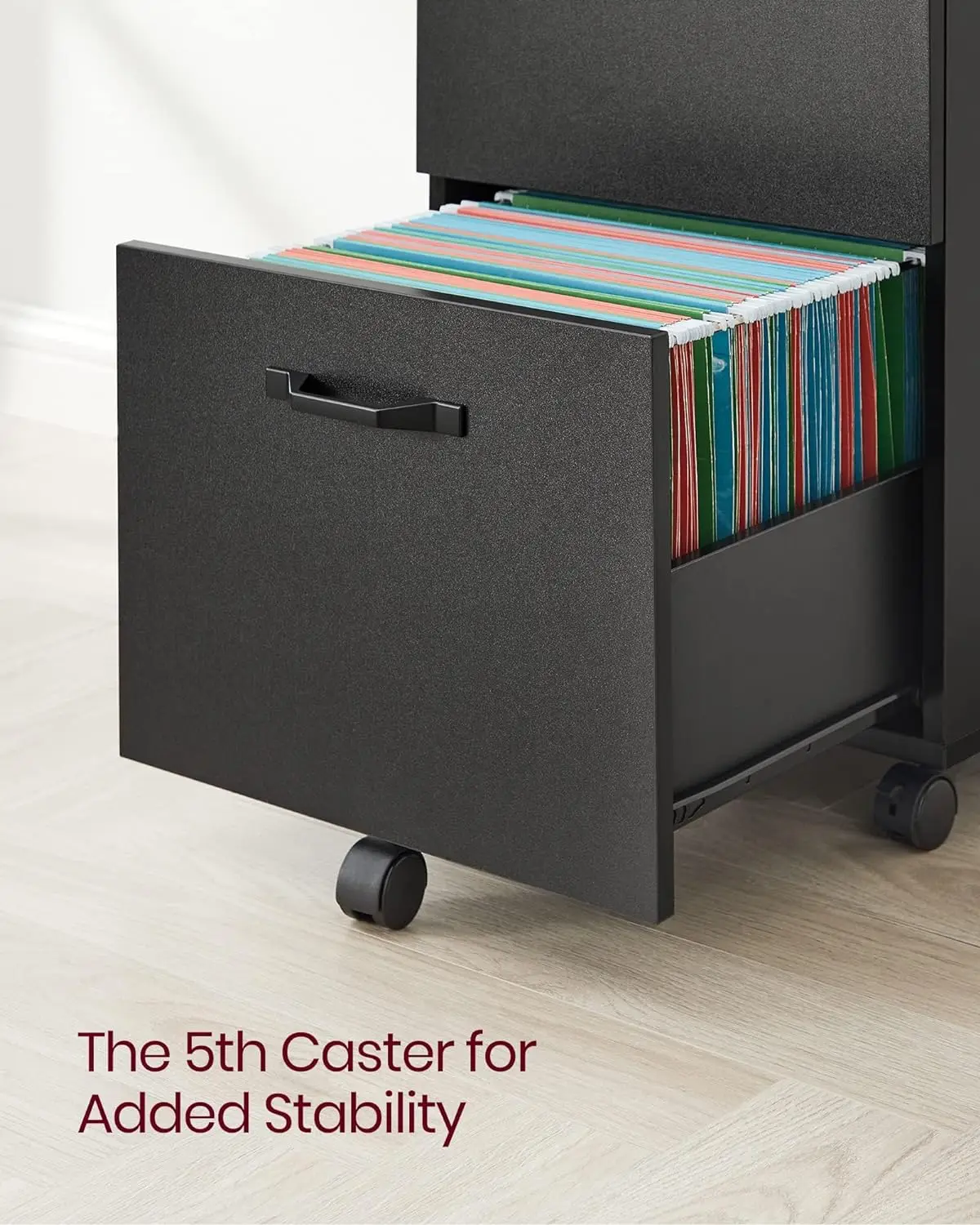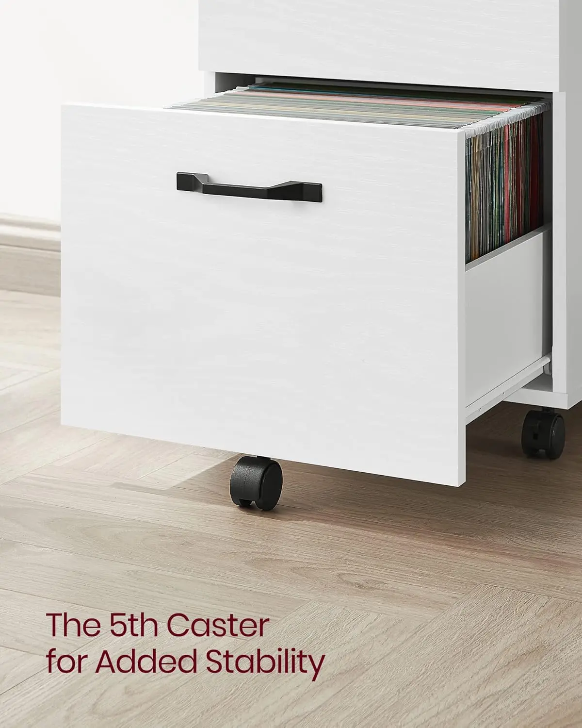 - 【LOCKABLE, SWIVEL CASTERS】Five 360° swivel casters allow you to move this filing cabinet around with ease. The 2 front casters are lockable to keep the cabinet in place when stationary and the fifth wheel on the bottom drawer adds to overall stability