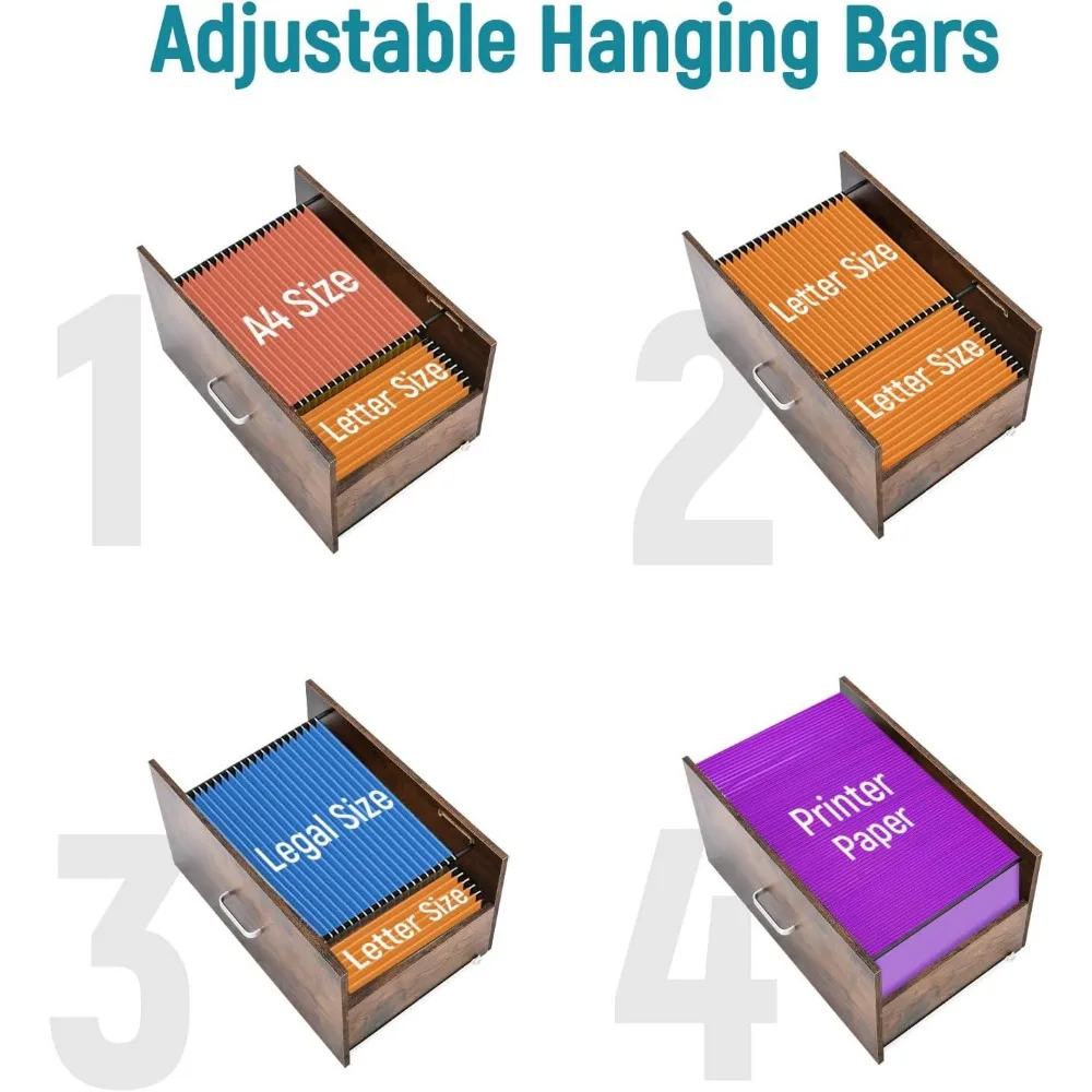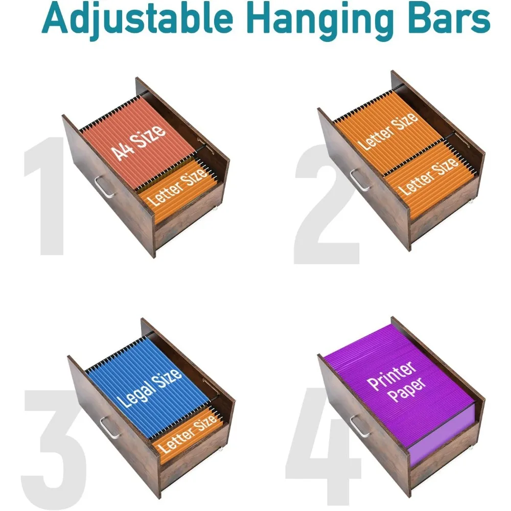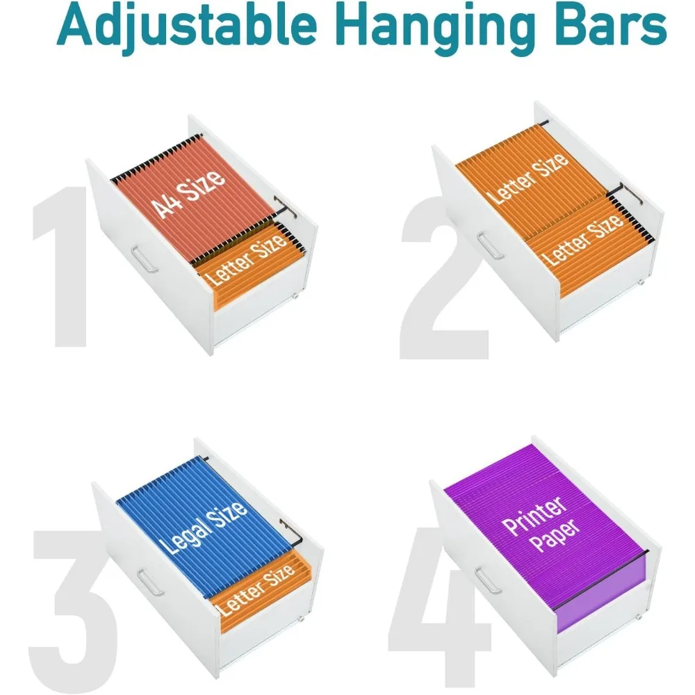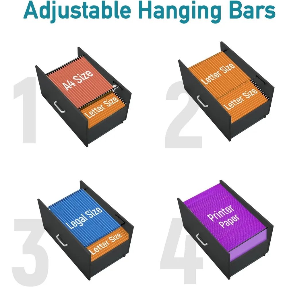 - 【LARGE CAPACITY STORAGE CABINET】: This office filing cabinet has plenty of storage space, each drawer is equipped with 2 adjustable thickened hanging bars, which can store A4, F4, letter, and legal sized documents according to your specific needs, keeping your various documents in order. And the drawers are made of high-quality full-extension steel mute slides, which makes it easy and smooth to pick up and put down items while minimizing noise interference.