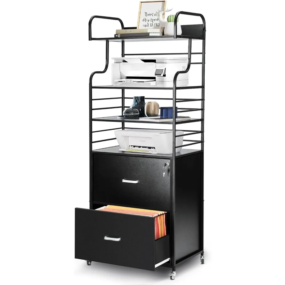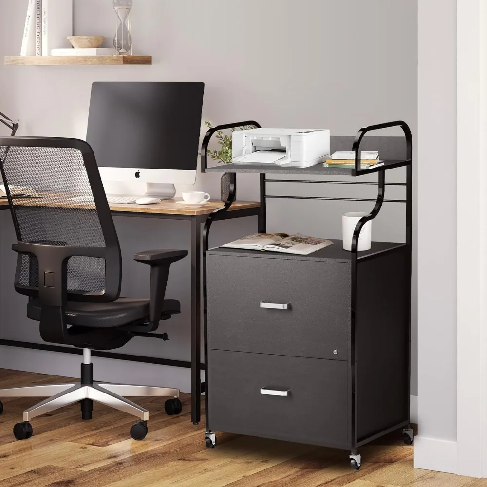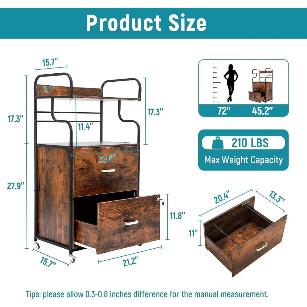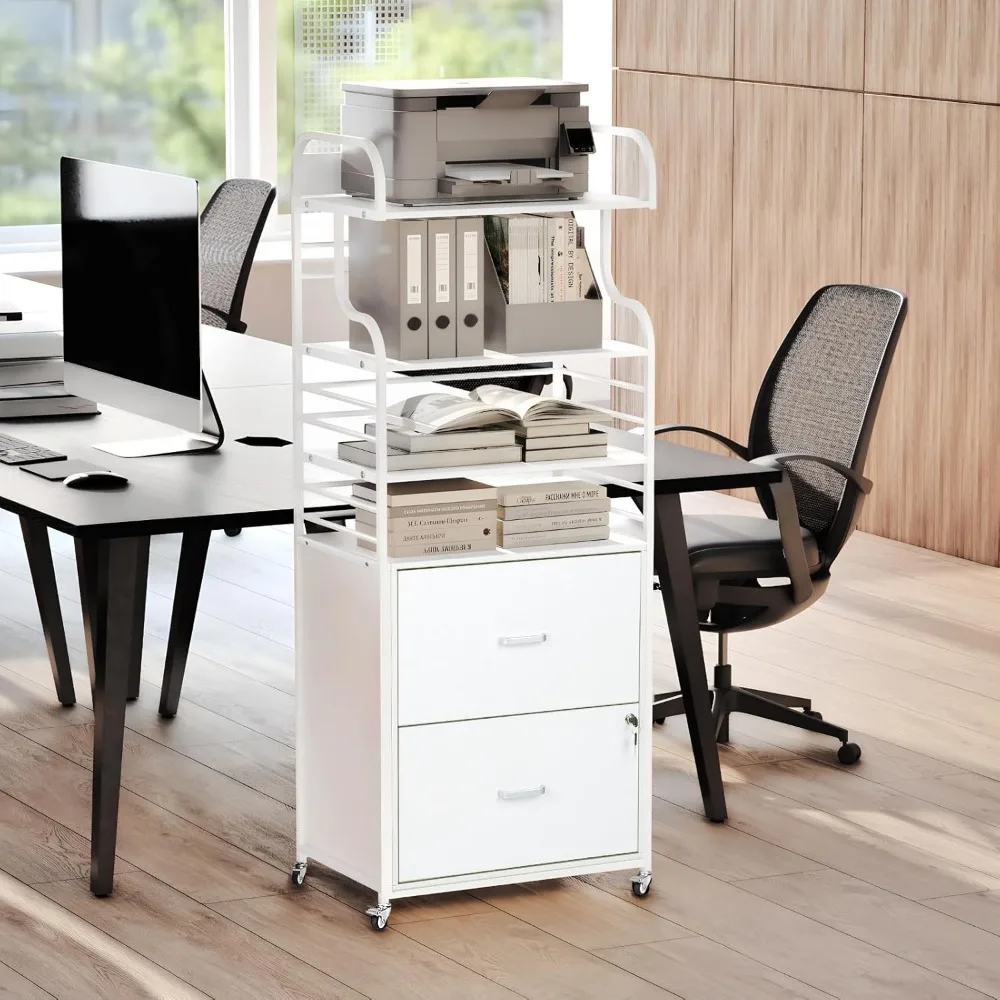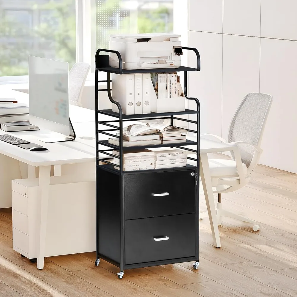 - 【MULTIFUNCTIONAL DESIGN】: This practical storage file cabinet has 2 large drawers and 1 tier open adjustable shelves. The top of the filing cabinet holds a printer and scanner, and the open shelves are designed to stylishly store books, photos, CDs, trinkets, office essentials and more. It functions as a beautiful bookshelf, room divider, display shelf and storage shelf for office, home, living room, children’s room, bedroom, kitchen, study room.