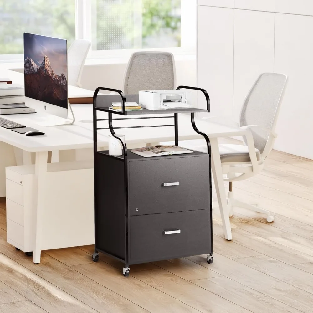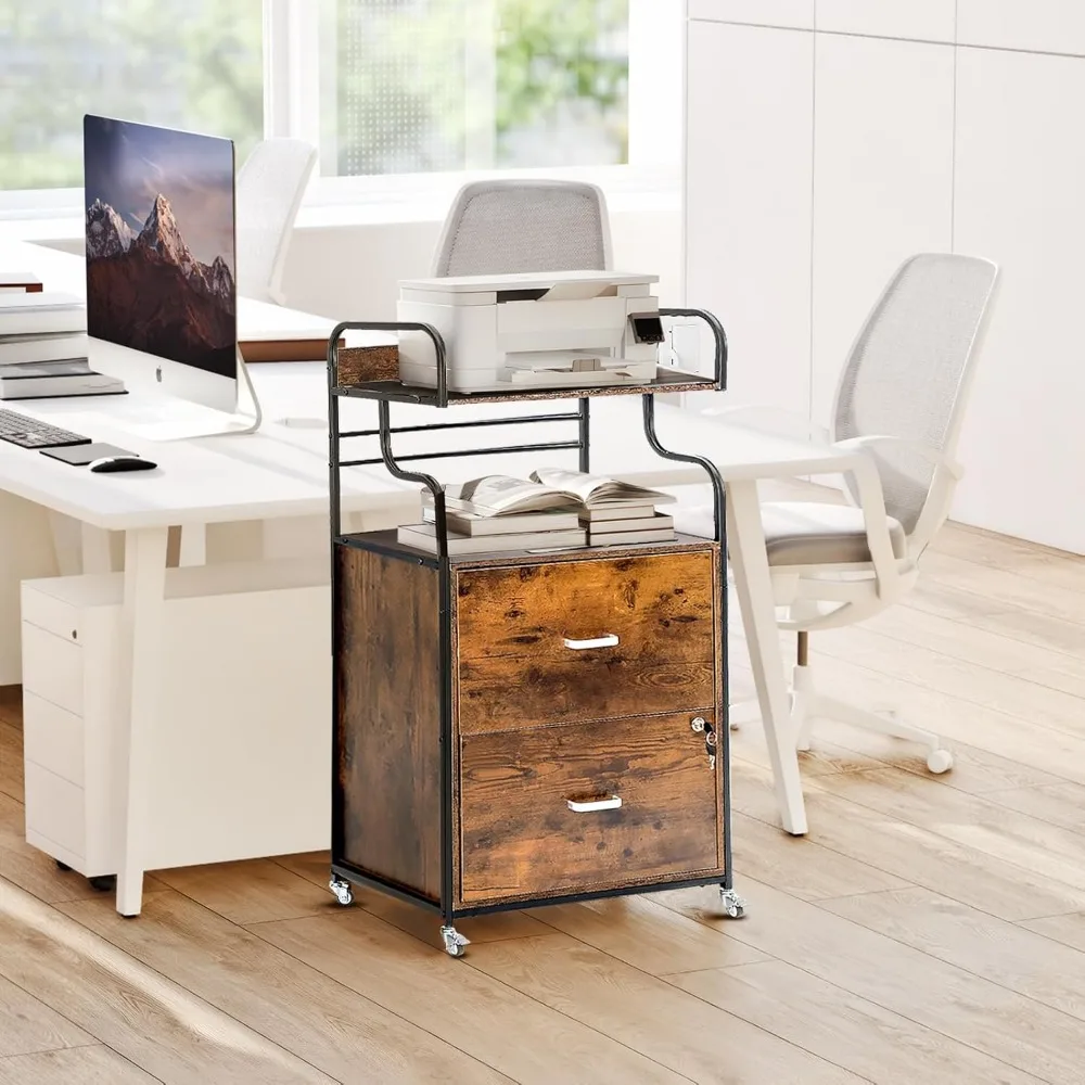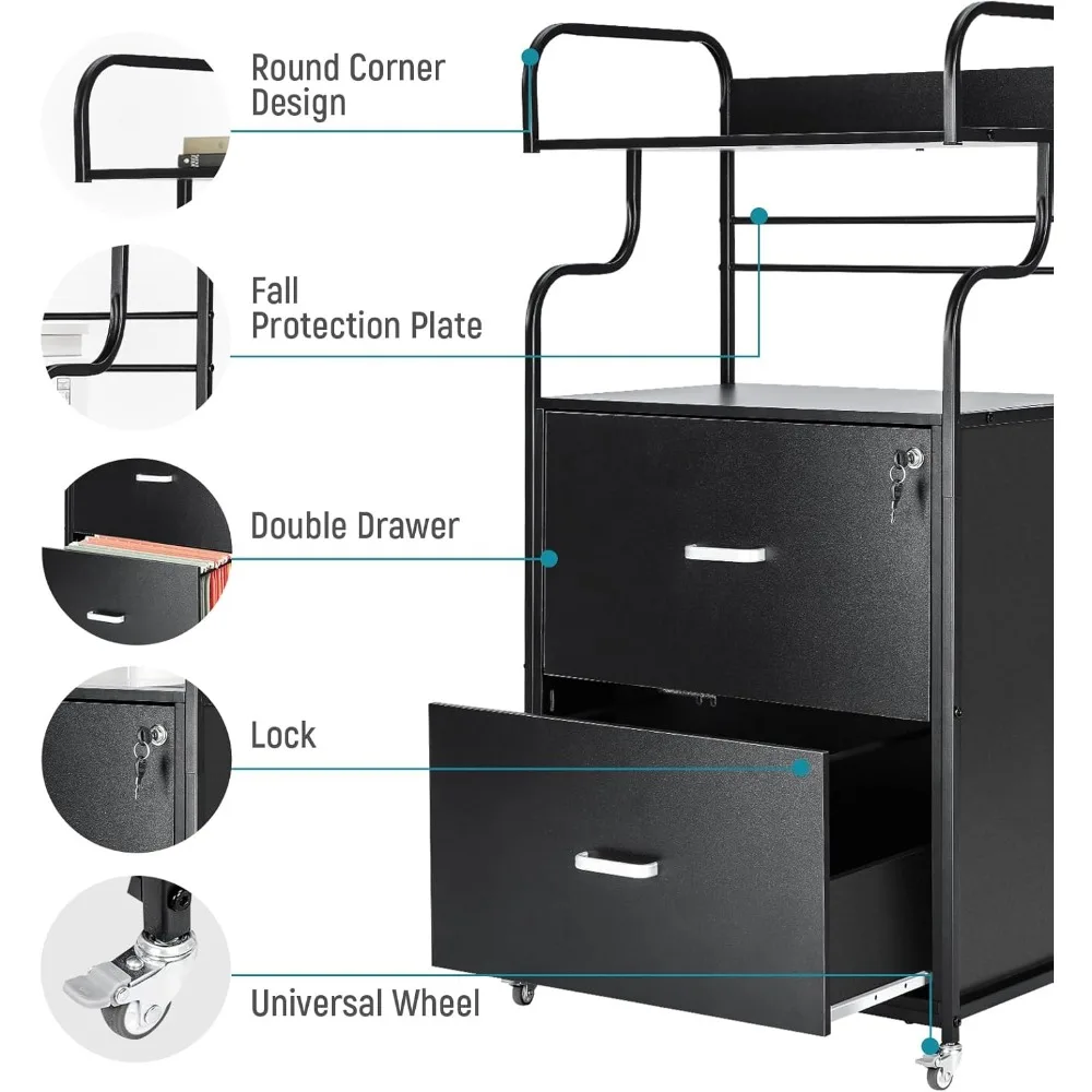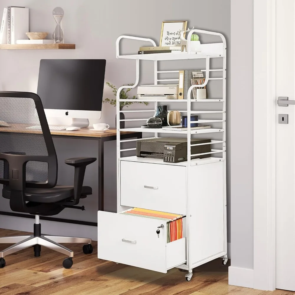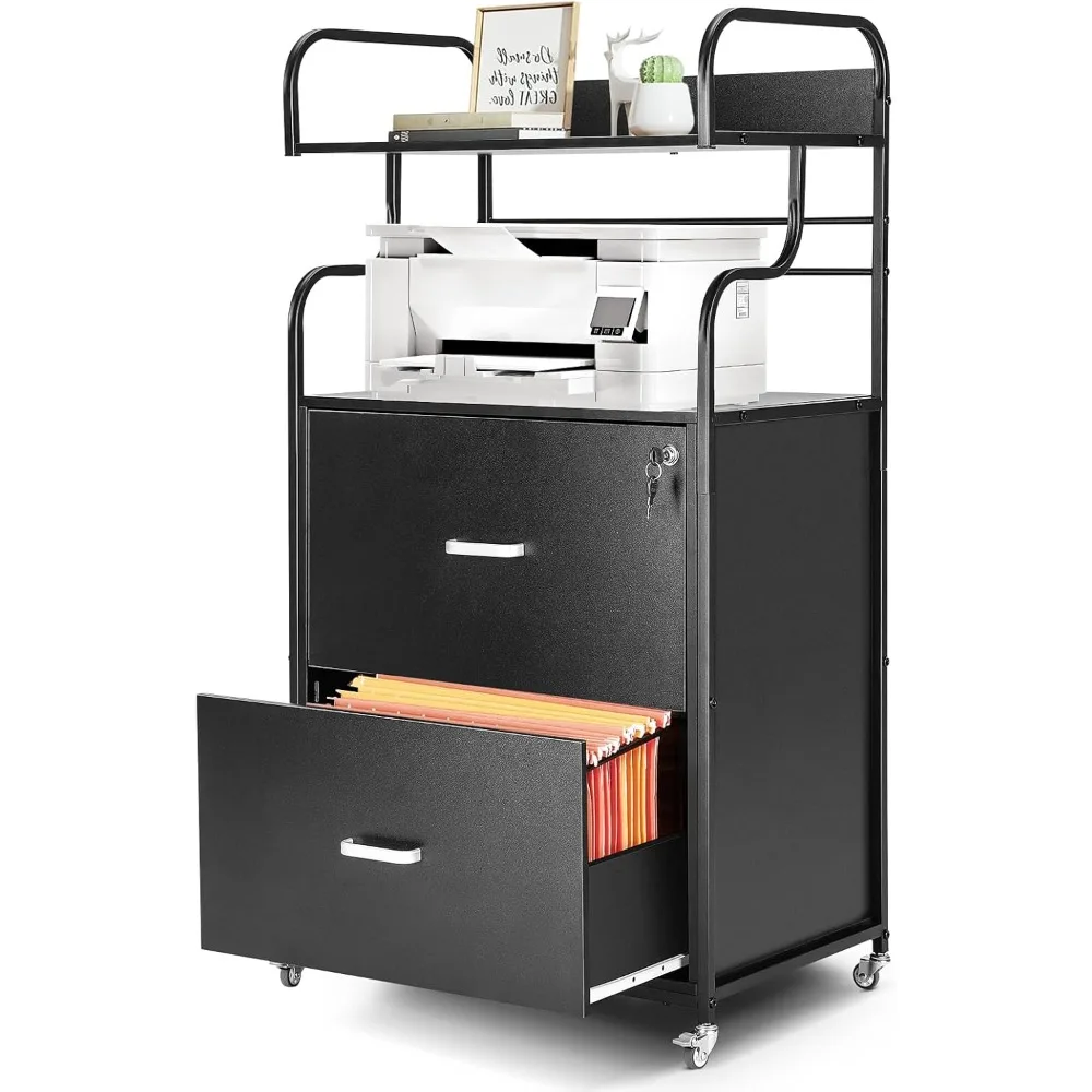 - 【MULTIFUNCTIONAL DESIGN】: This practical storage file cabinet has 2 large drawers and 1 tier open adjustable shelves. The top of the filing cabinet holds a printer and scanner, and the open shelves are designed to stylishly store books, photos, CDs, trinkets, office essentials and more. It functions as a beautiful bookshelf, room divider, display shelf and storage shelf for office, home, living room, children’s room, bedroom, kitchen, study room.