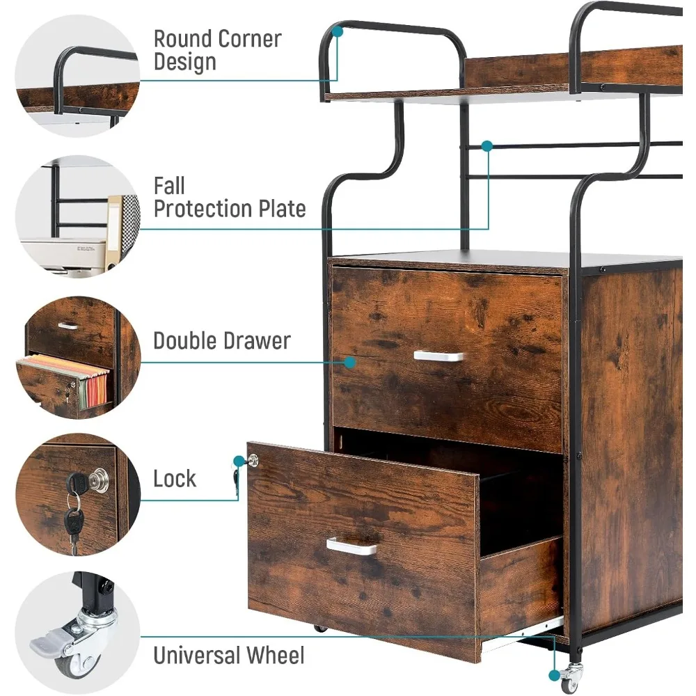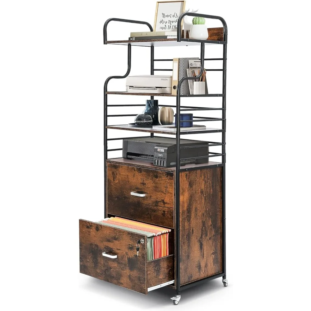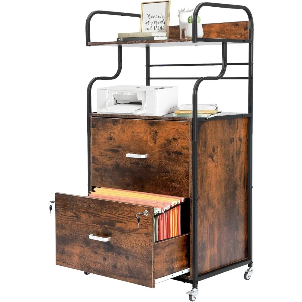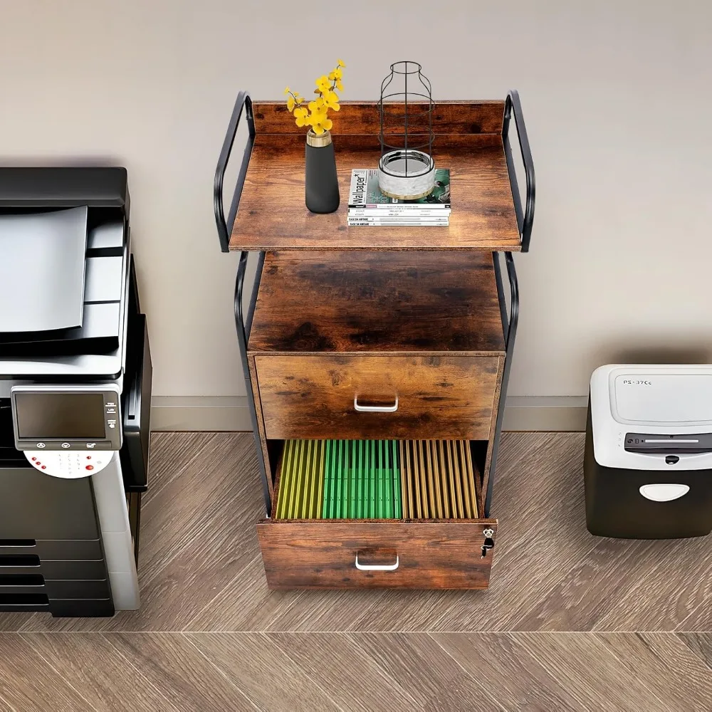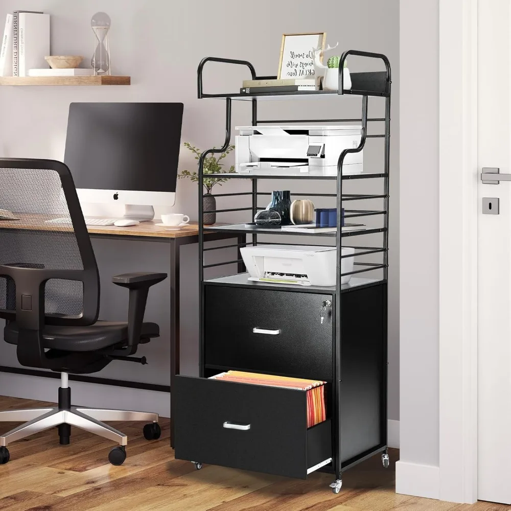- 【MULTIFUNCTIONAL DESIGN】: This practical storage file cabinet has 2 large drawers and 1 tier open adjustable shelves. The top of the filing cabinet holds a printer and scanner, and the open shelves are designed to stylishly store books, photos, CDs, trinkets, office essentials and more. It functions as a beautiful bookshelf, room divider, display shelf and storage shelf for office, home, living room, children’s room, bedroom, kitchen, study room.