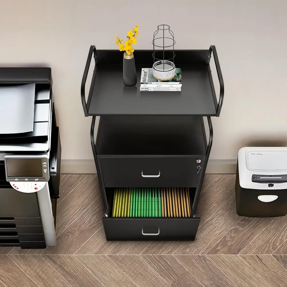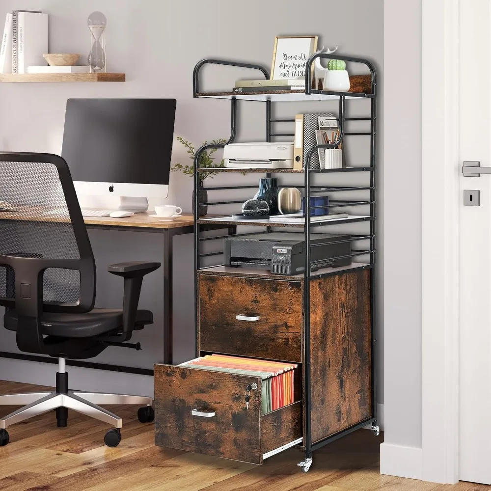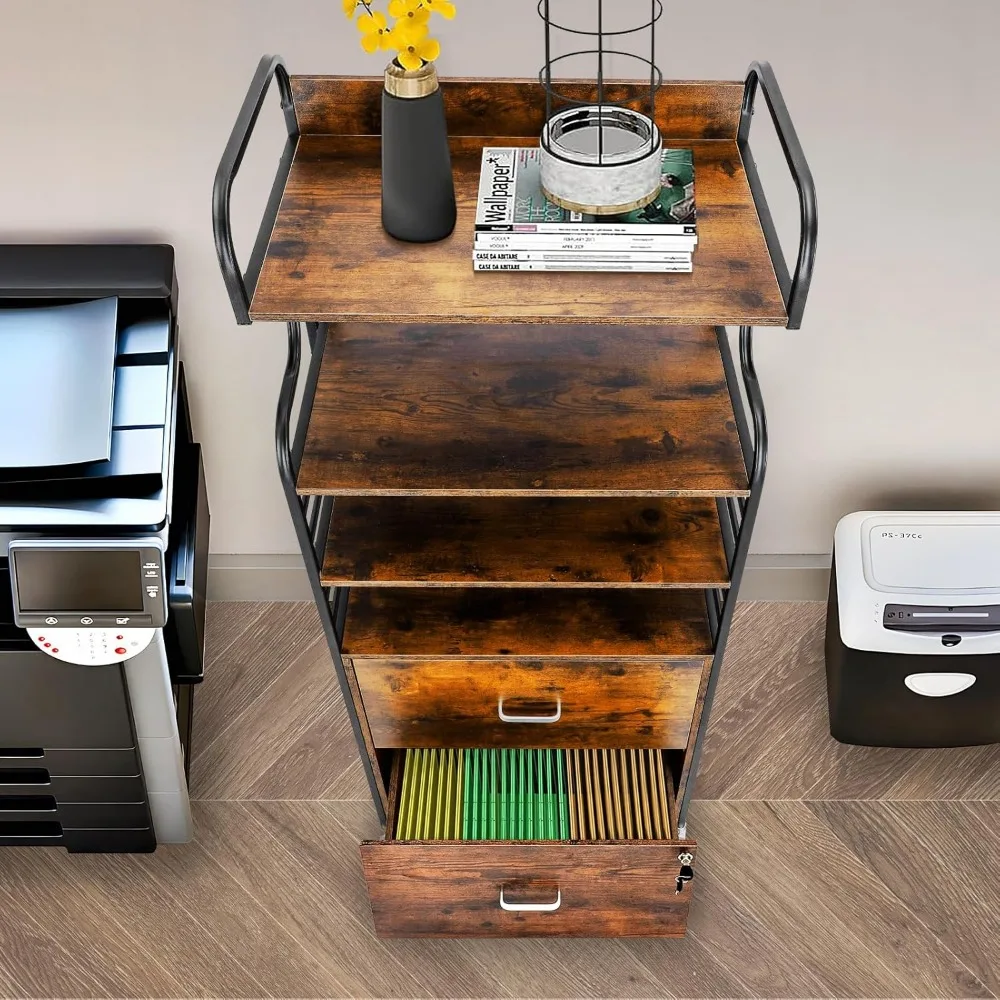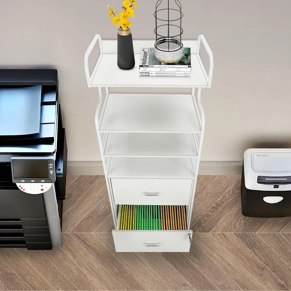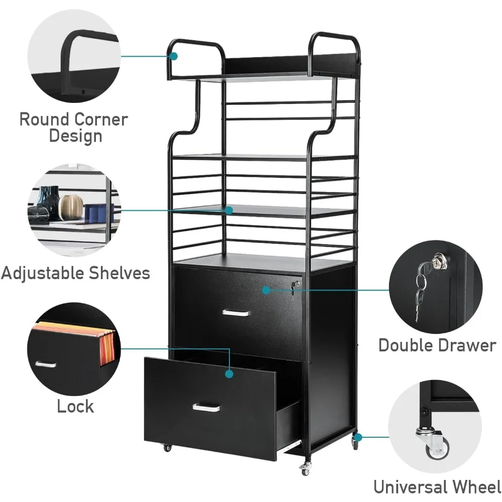- 【MULTIFUNCTIONAL DESIGN】: This practical storage file cabinet has 2 large drawers and 1 tier open adjustable shelves. The top of the filing cabinet holds a printer and scanner, and the open shelves are designed to stylishly store books, photos, CDs, trinkets, office essentials and more. It functions as a beautiful bookshelf, room divider, display shelf and storage shelf for office, home, living room, children’s room, bedroom, kitchen, study room.