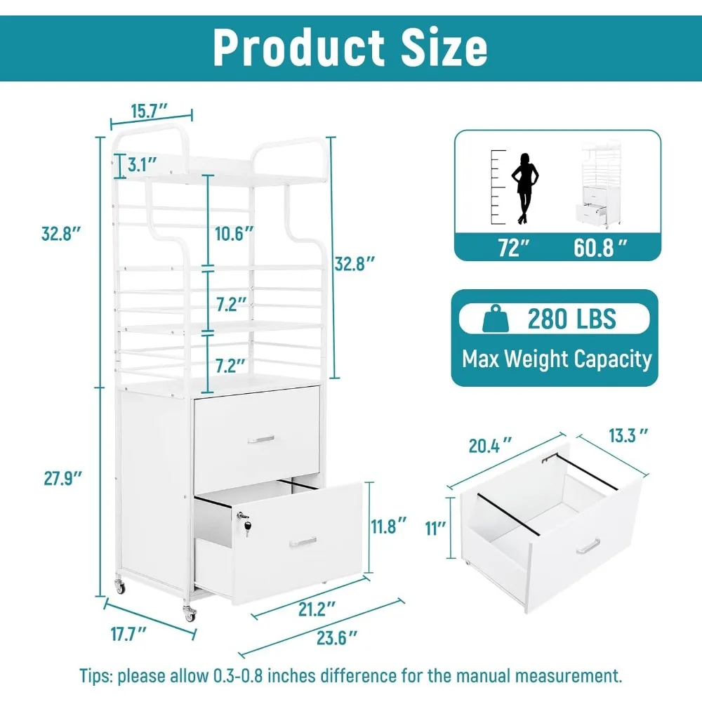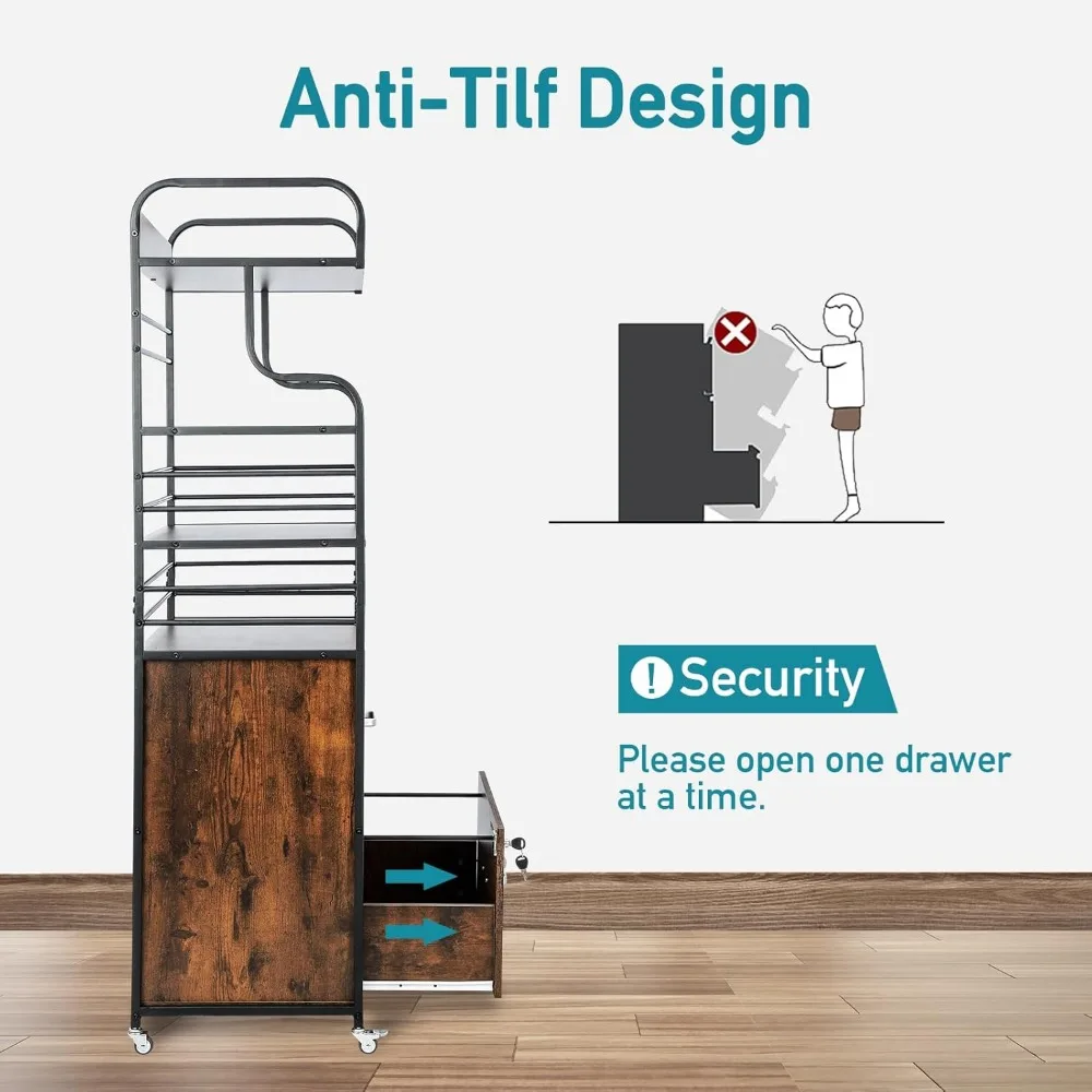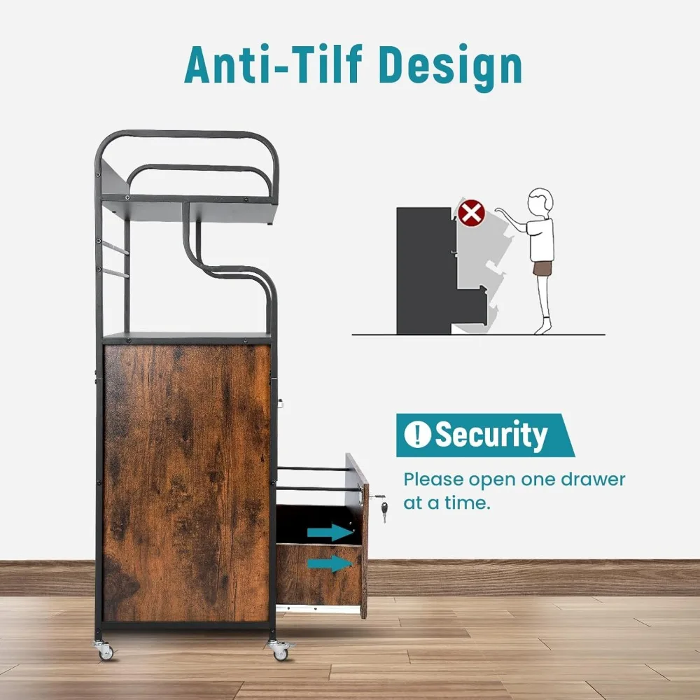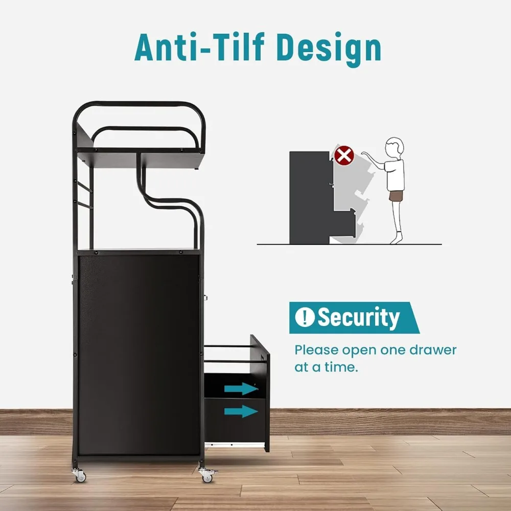 - 【SECURE LOCKING FILING CABINET】: The file cabinets are equipped with 4 rolling casters and 2 of them have built-in brakes, which allow you to move freely. Most importantly, the cabinet adopts a single locking system, equipped with 1 lock and 2 keys, which can effectively protect the safety of your important documents and personal belongings. The storage filing cabinet has an anti-tip design, please make sure to open only one drawer at a time to prevent tipping and protect your safety.