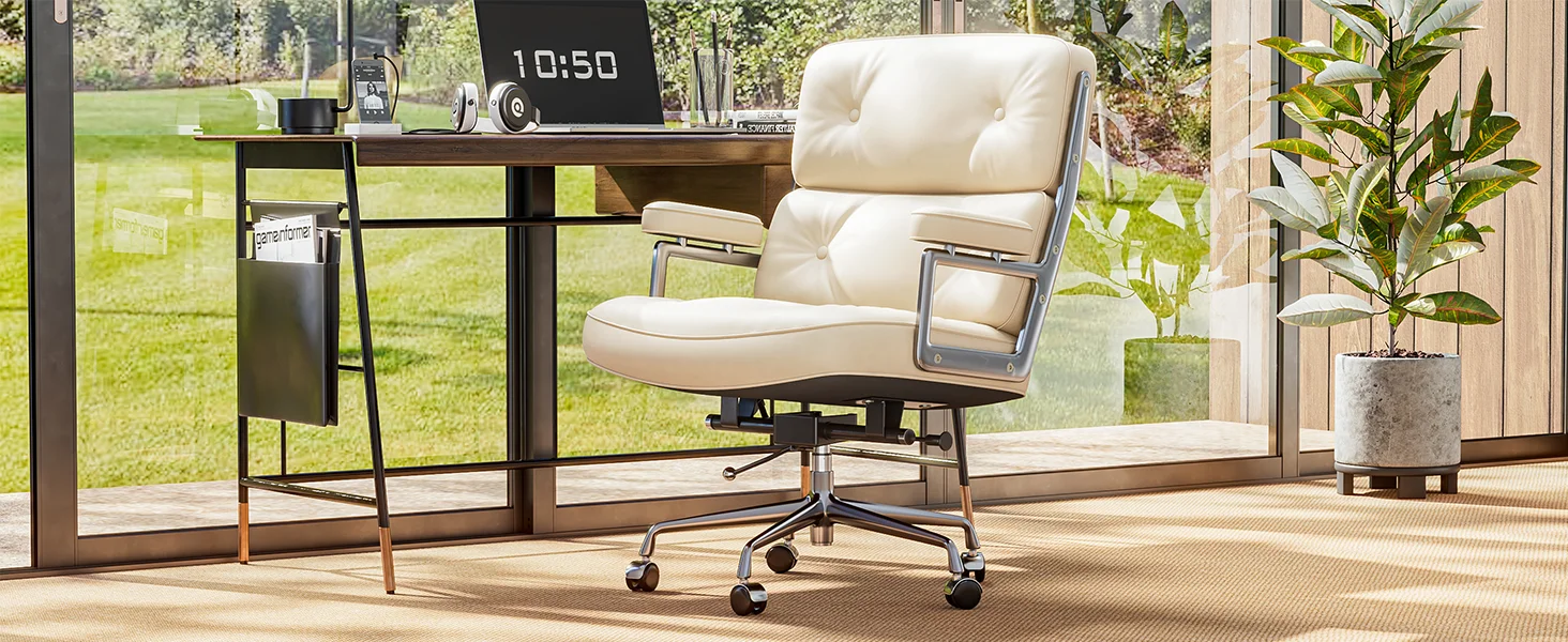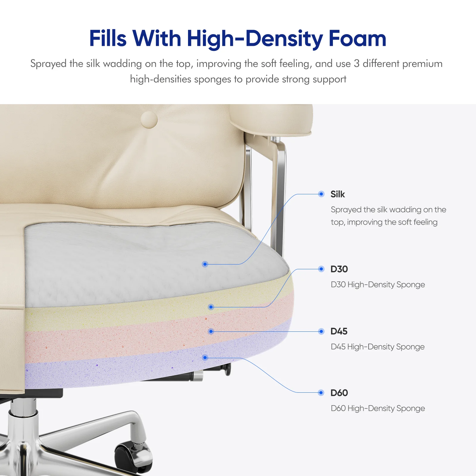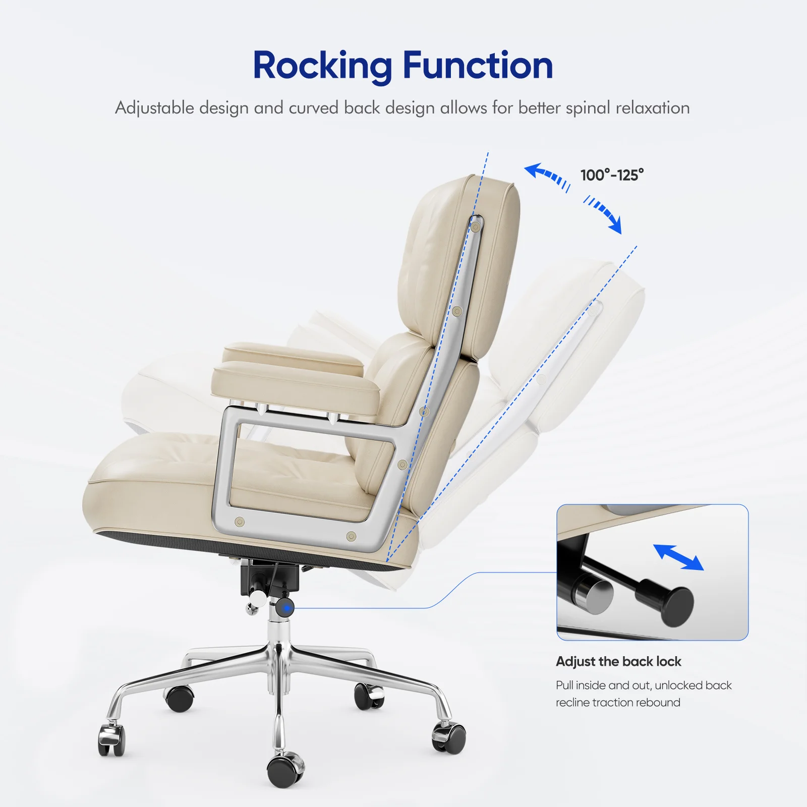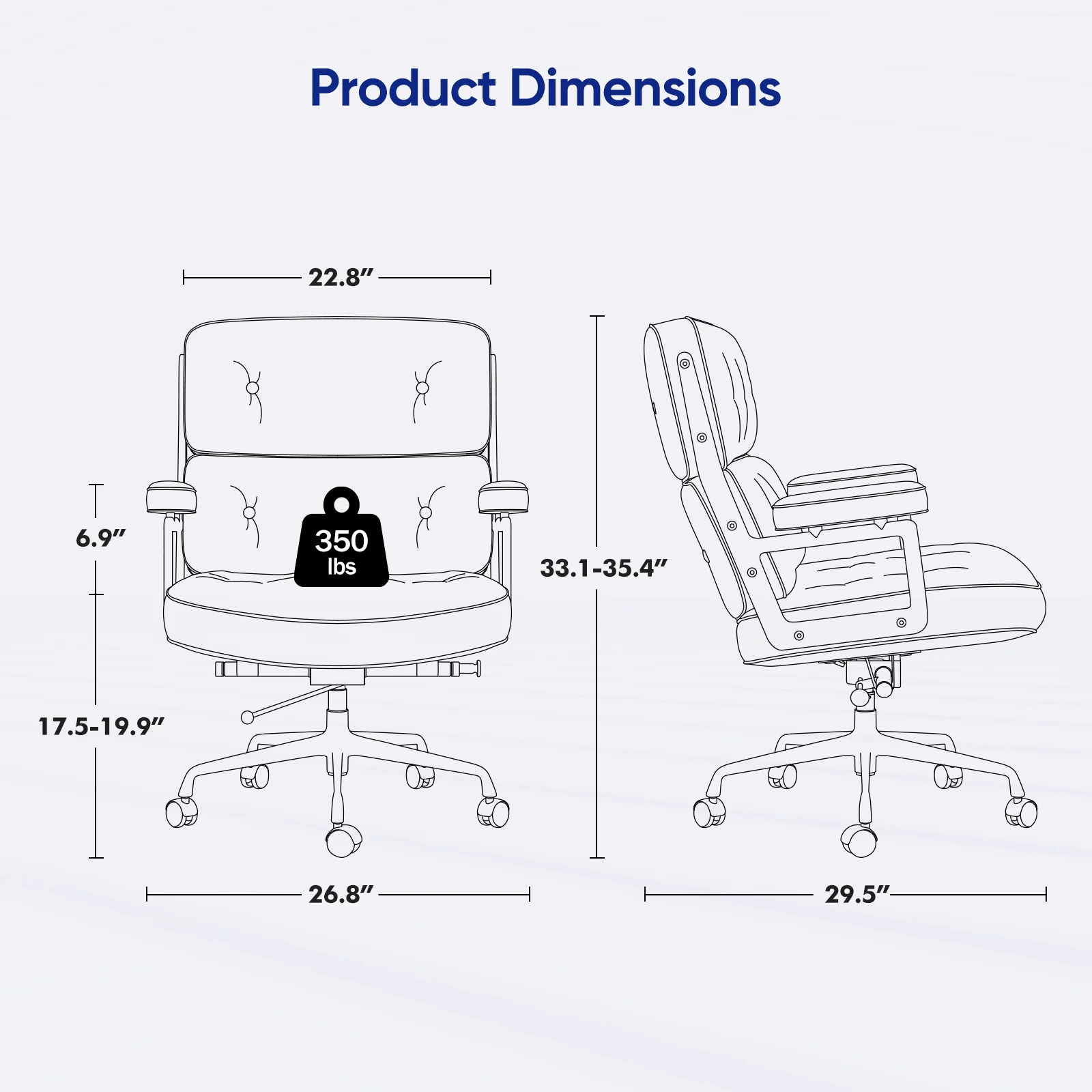 🎁Comfortable and Ergonomic Design: This office leather chair is perfect for long hours of sitting. It uses Top Grain Leather, and Aluminum, and the executive office chair’s sleek and ergonomic design will complement the home, office, conference room, etc.