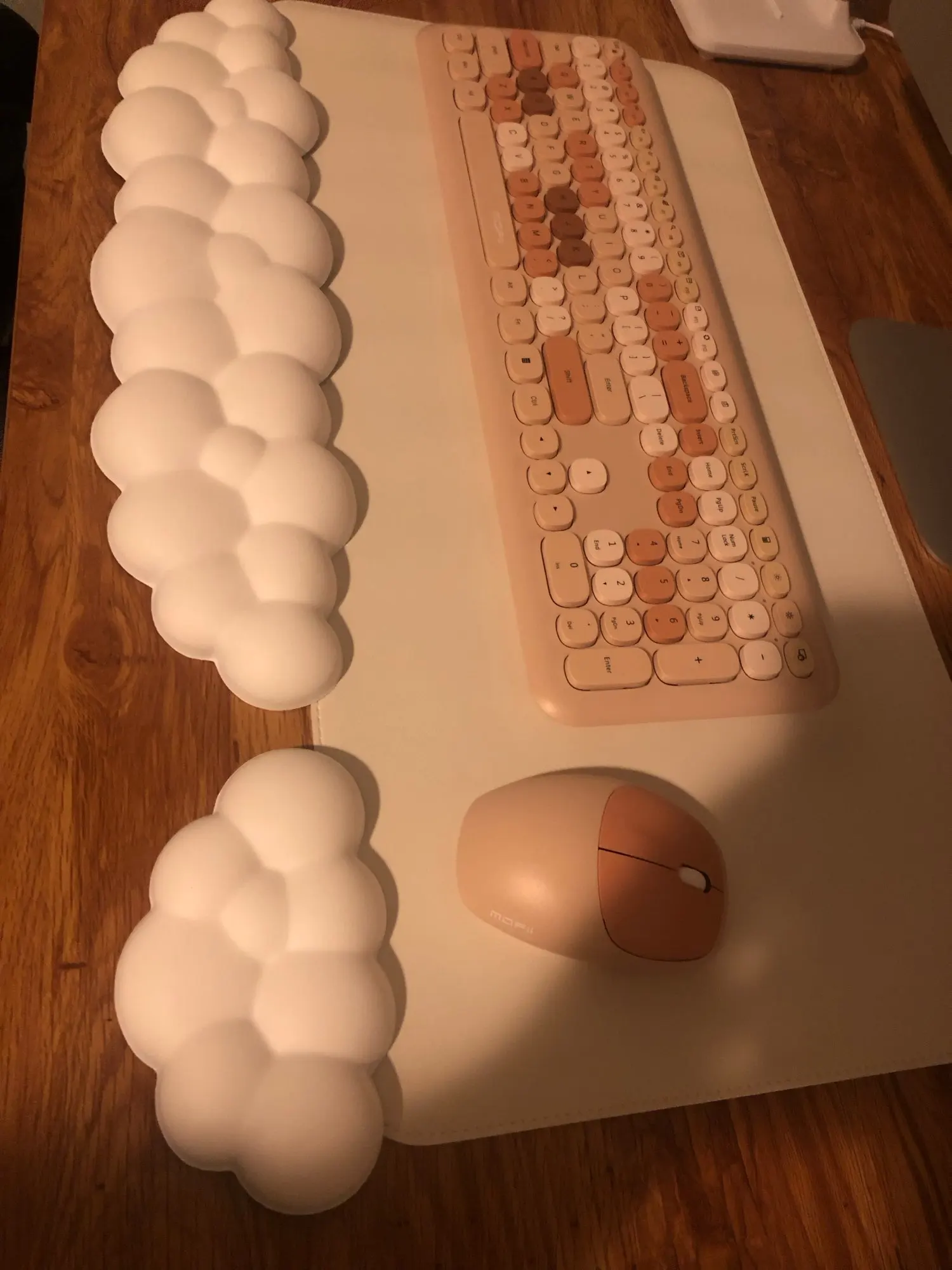 Love this color for a light wooden desk! The price is AMAZING for the quality. I just got it so it has yet to settle its bumps out but that’s totally normal .