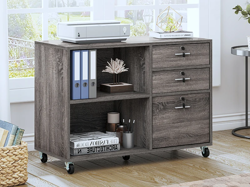 Rolling on 360° wheels for easy moving on the floor or carpet and 2 front casters have brakes to keep the cabinet in place.