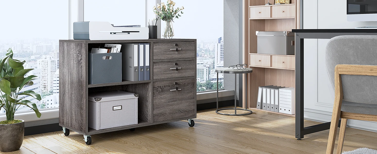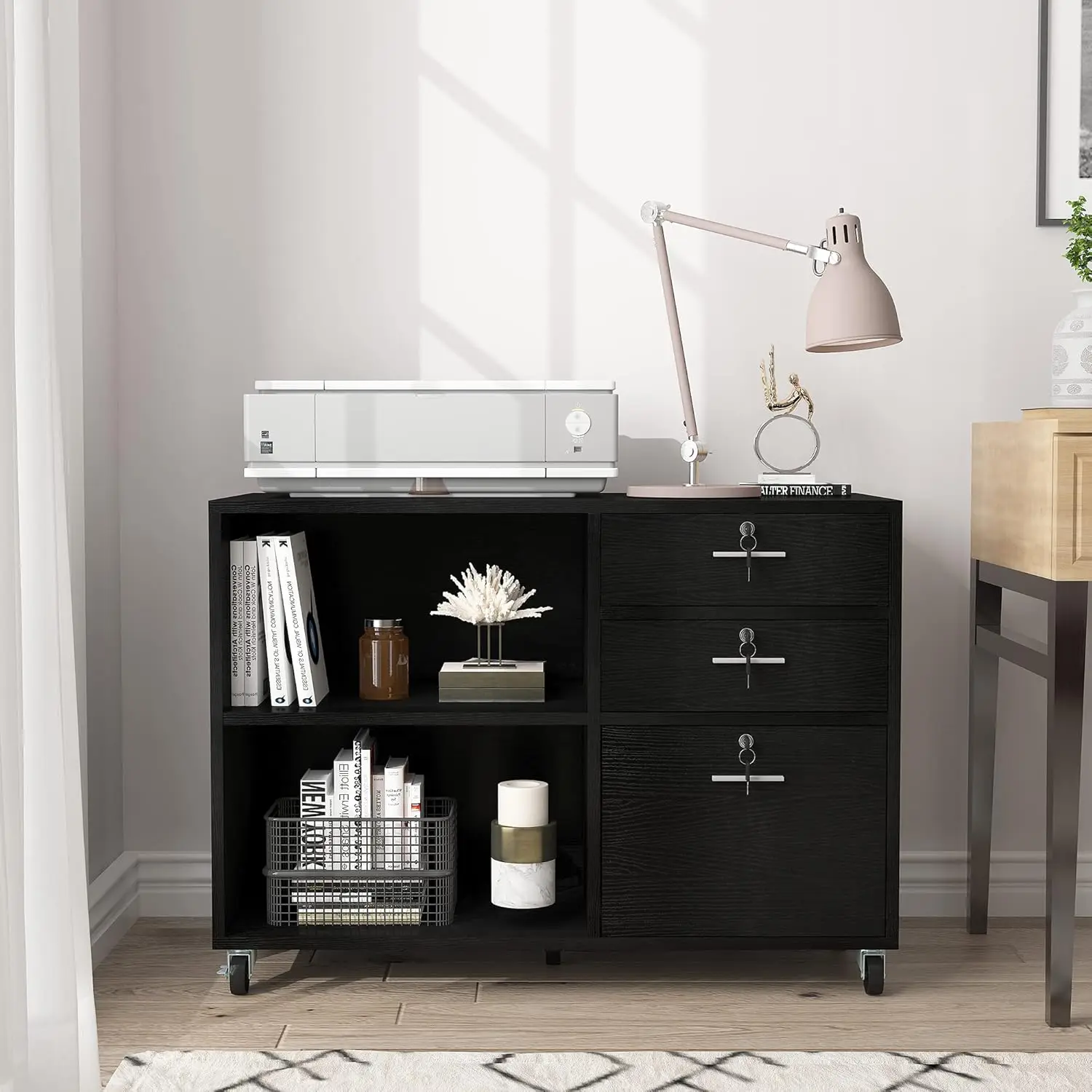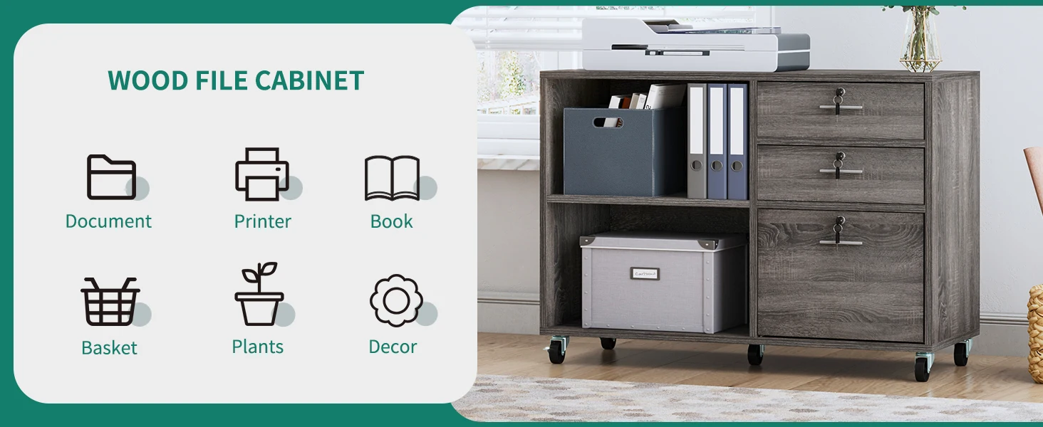 - MULTI-FUNCTIONAL & STYLISH- Complete with open storage spaces and file drawers, this filing cabinet is designed to organize office machinery, paper, files, and suppliers. It can be placed next to or under a desk. The sleek and modern aesthetic makes it a fantastic fit for any office or home.
