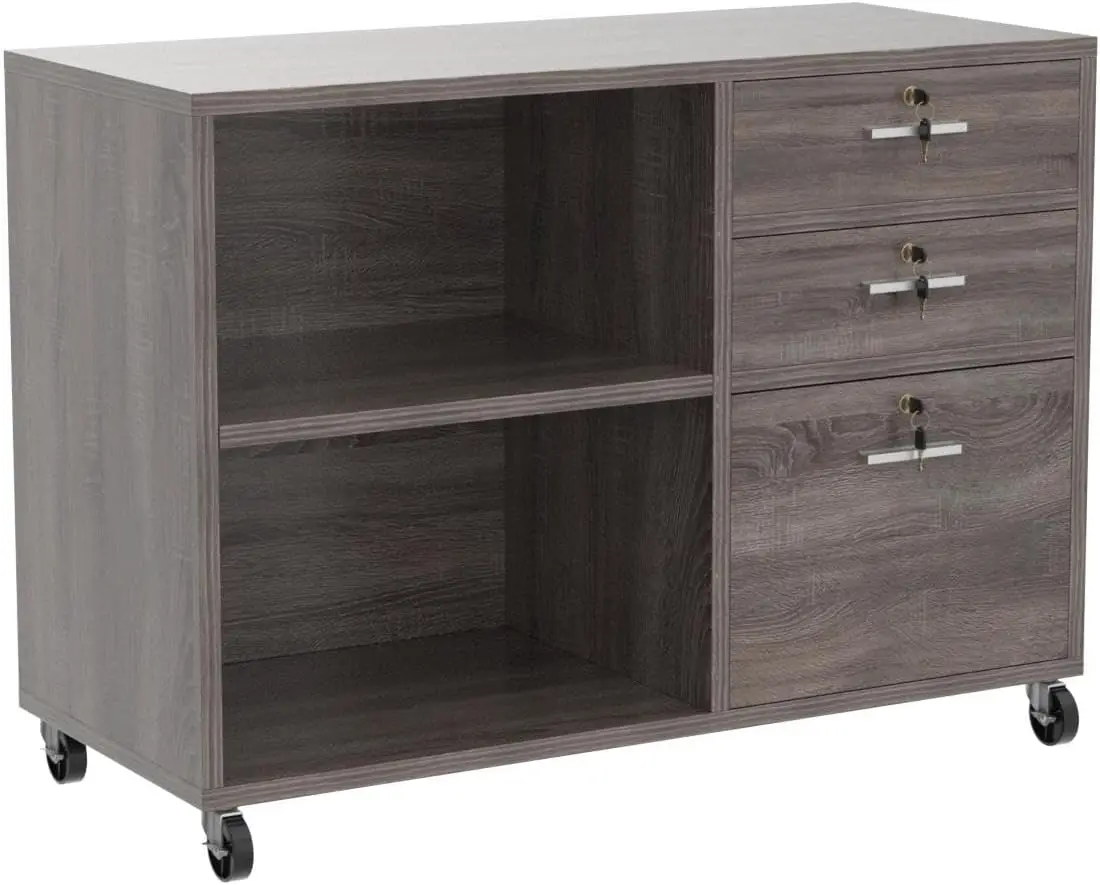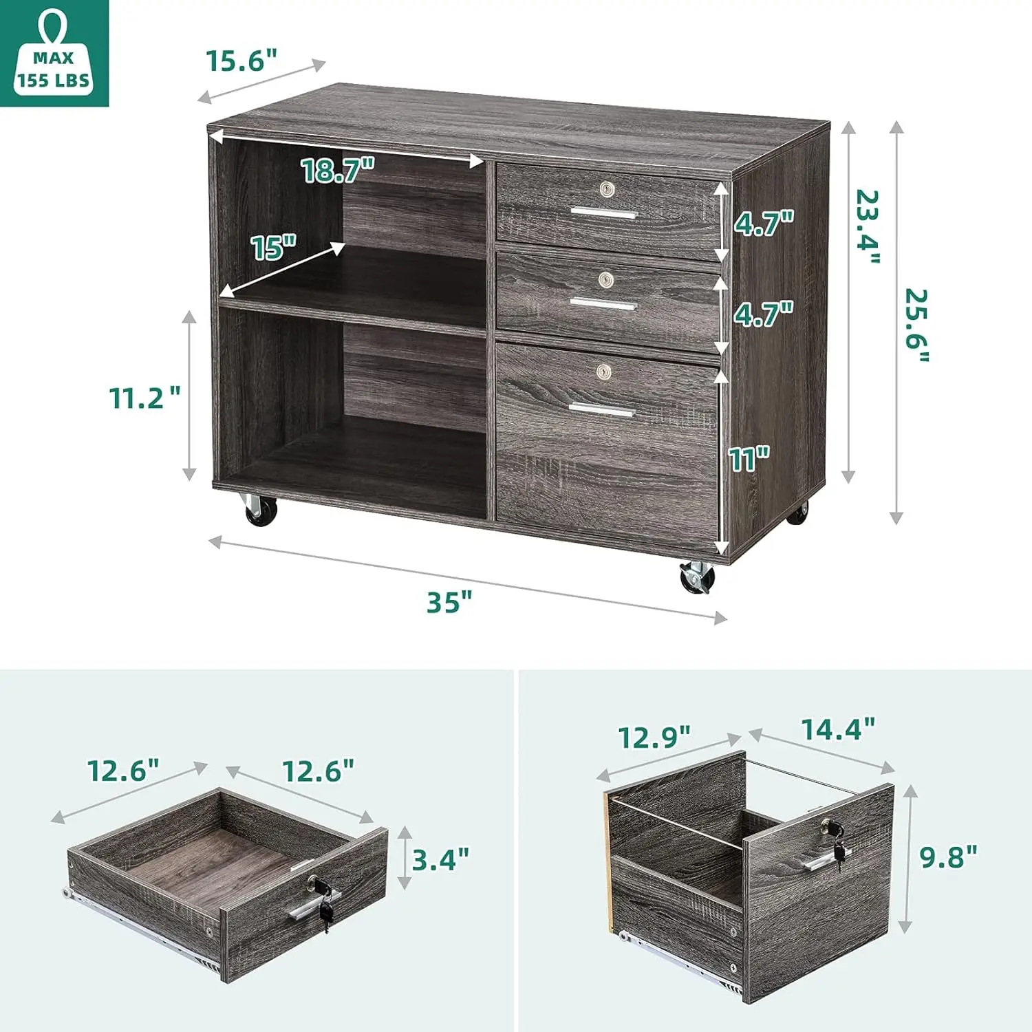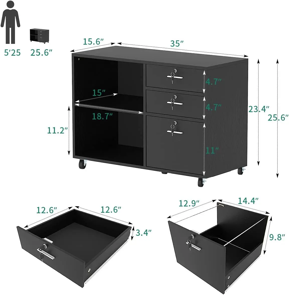 - SPACIOUS STORAGE- Features 3 spacious drawers and 2 open shelves for additional space. The bottom drawer can contain hanging files and the top two small drawers are perfect for pens/pencils, office supplies, address labels, stamps, etc.
