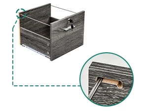 Hanging file bars in the bottom drawer can be adjusted to collect your letter and A4 size files.