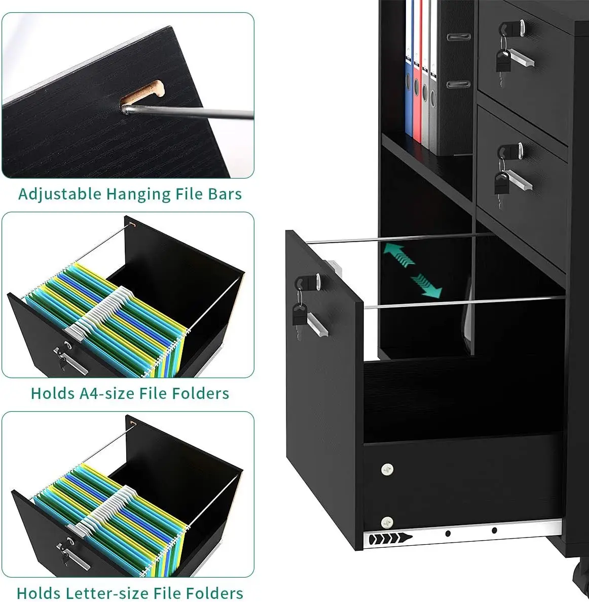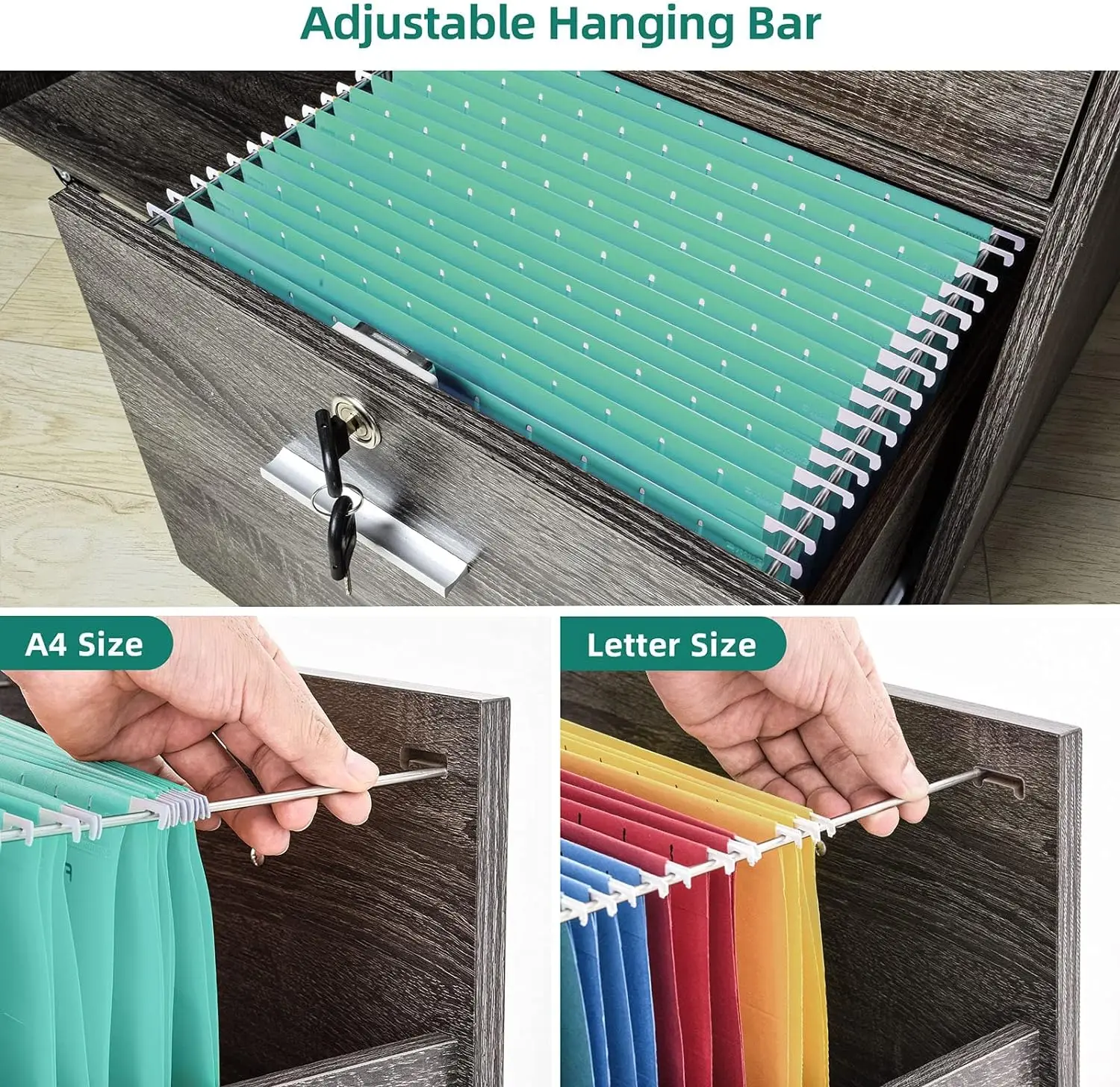 - LOCKABLE FILING DRAWER- The two folders hangers in the bottom drawer are made using stainless steel. They can be moved and adjusted to easily accommodate letter-sized and A4 folders. 3 drawers can be locked so you can store personal documents, receipts and bills with peace of mind.