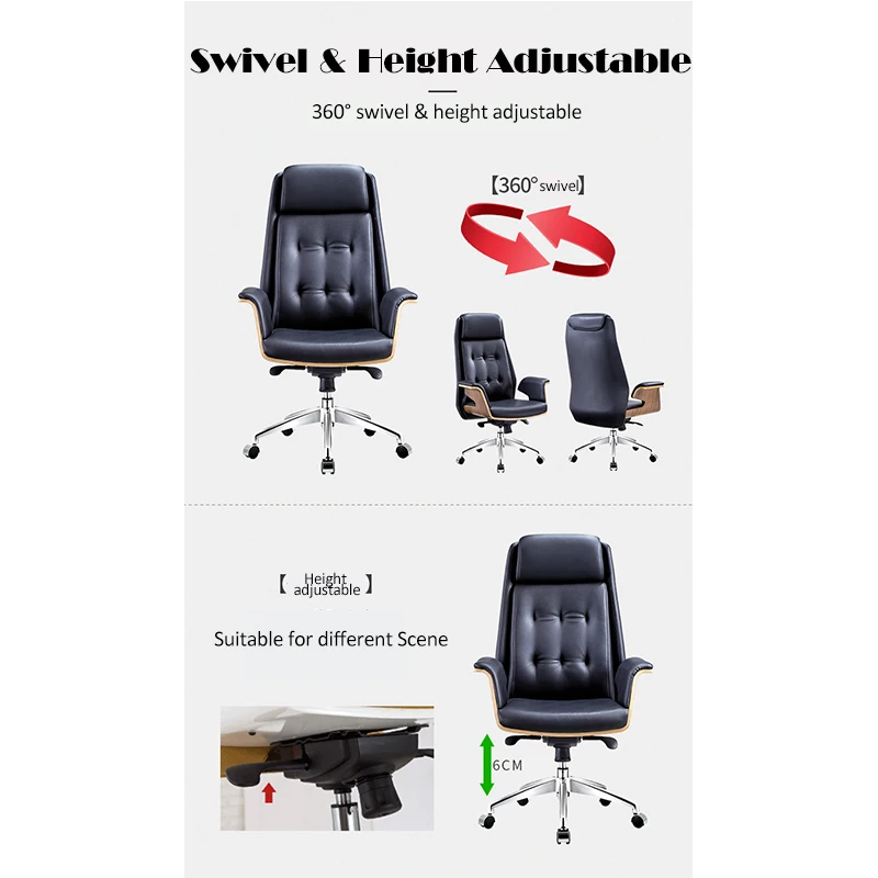 Modern luxury 200kg wood office chair furniture leather butterfly chair ergonomic swivel leather executive office chair